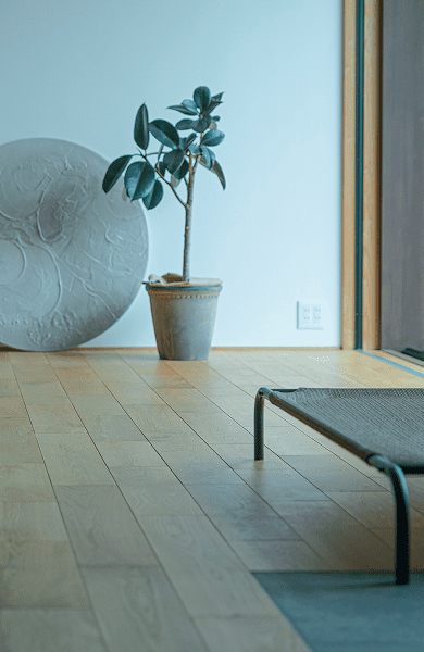 使い込むほどに木肌の色合いが深まり、暮らしに馴染んでいく経年変化を楽しめるのも、無垢フローリングならではです。