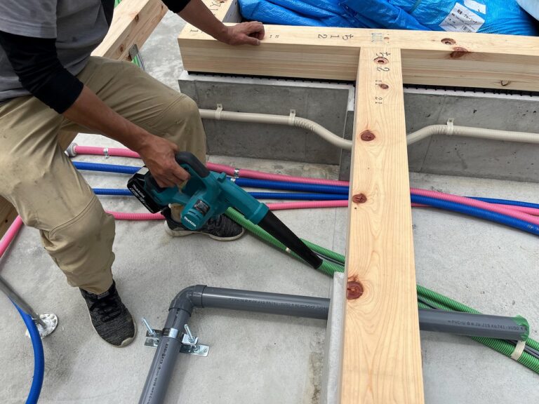 1日目は束の設置まで終わったので今日は床の断熱敷きから始まります。