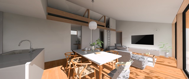 1階で完結できる間取りですが、LDKにはロフトスペースを設け、平面的にも立体的にも空間に余裕を持たせる事が出来ました。