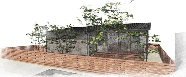 お打合せ当初、焼杉特有の風合いを気に入って頂き、炭を落とさない素焼きの焼杉を外壁材に使用する形でお話させて頂いておりました。