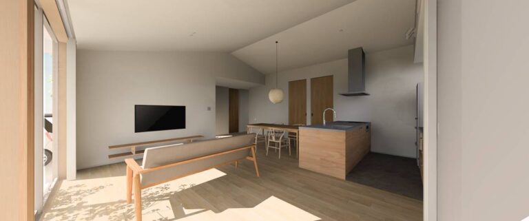 半平屋の間取りをご提案させて頂き、LDK部分は勾配天井で広く開放感のある空間になりました。