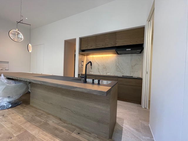 その他にも板材の色見やキッチン天板、各種の設備にもこだわり、沢山打合せを重ねて完成したキッチンはとても迫力があり、空間の主役になってくれていました。