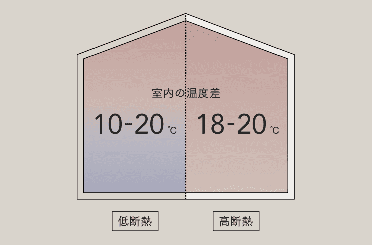 高断熱住宅とは、その名の通り断熱性能が高い住宅のことです。それでは、なぜ高断熱住宅が良いのでしょうか?それは、家全体を断熱材ですっぽりと覆うため、家全体が暖かくなり、部屋間の温度差が少なくなるからです。そのため、暖房器具を置いているリビングやキッチンはもちろんのこと、無暖房の浴室やトイレ、廊下などもヒヤッとすることがなくなります。このことは、冬の浴室などで発生する「ヒートショック」などの事故を防ぐことにもつながります。