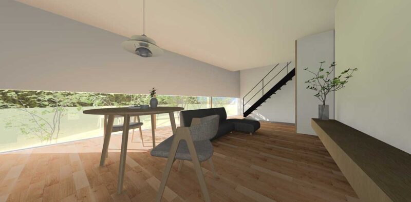 土間に立って、目線の高さにのびる長い窓をふと眺める。