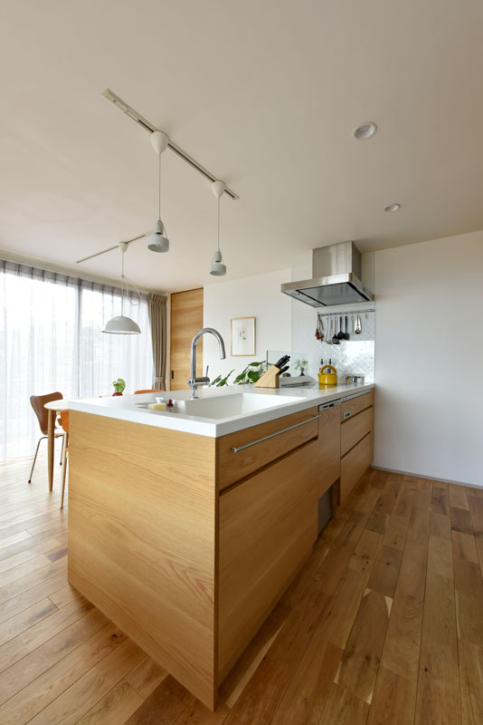 山すその高台にあるため、東側の窓からは奈良盆地を一望することができます。また、敷地の東と南が道路に接して開けているため、採光と通風ともに抜群の好立地をご購入されての家づくりとなりました。