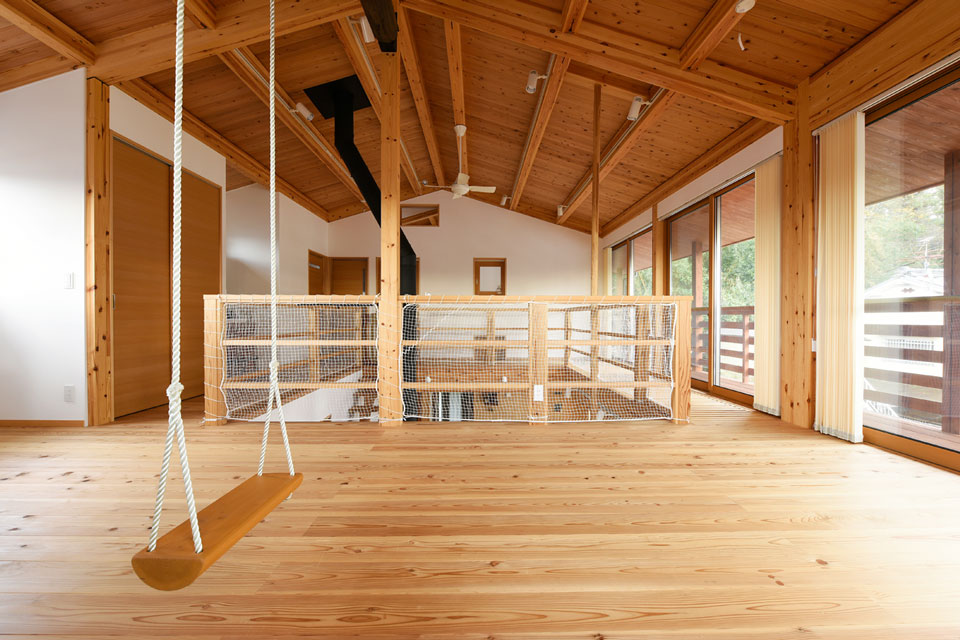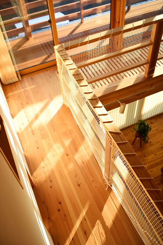 U様がイメージされたのは、家族の存在をお互いに感じられる、全体がひとつの空間のような家。吹き抜けがあったり、キャットウォークがあったり。子どもたちにも、そんな空間でのびのびと育って欲しいと考えておられました。
