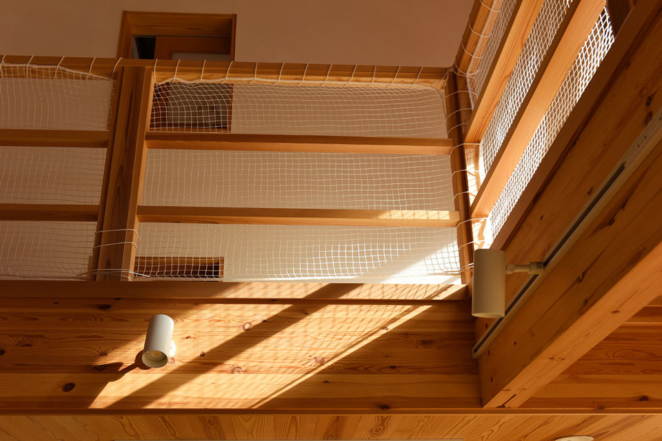 当初から望んでいた、吹き抜けのキャットウォークは、回廊型に。