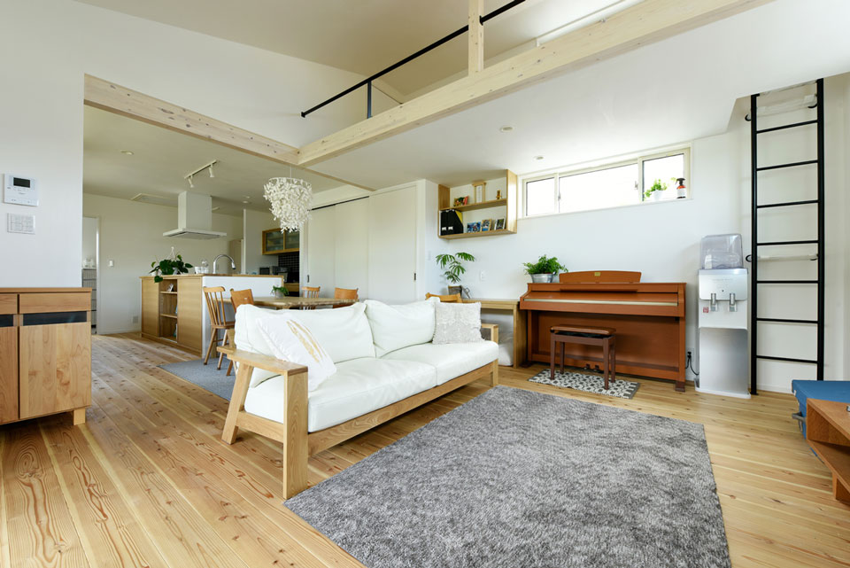完成したお宅の、ナチュラルなウッドカラーと白とのコンビネーションで統一された清潔感のあるインテリアは、奥様のセンスが光ります。