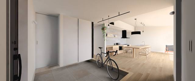 玄関ホールとLDKは壁で区切らず、オープンな空間にしています。