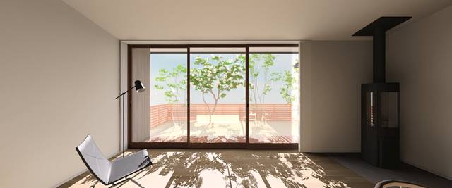 大開口が可能な3枚引込タイプのサッシをご提案させていただきました。