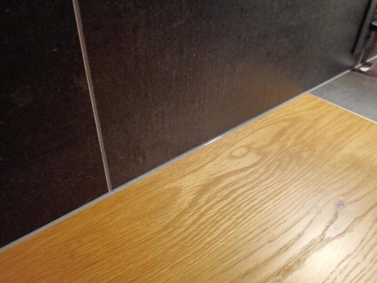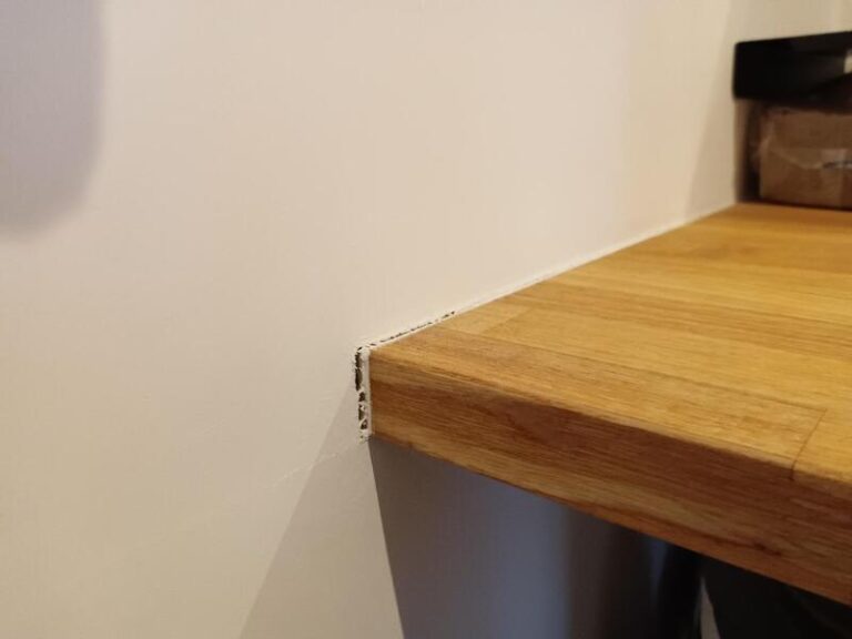 こちらは、手洗いカウンター壁際の隙間です。木材は全て乾燥材で収縮しにくい材料を使用しておりますが、それでも乾燥等で縮み隙間ができています。