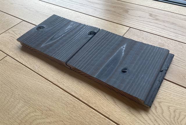 初めから焼杉が経年でシルバーグレーに変色した雰囲気を再現している上記の商品をご提案させて頂きました。