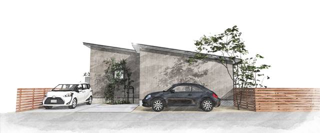 外観のイメージです。片流れ屋根と、グレー色の外壁材が特徴的なお家です。落ち着きのある上品な雰囲気になりました。