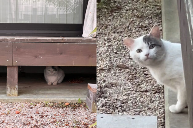 先日、事務所のデッキ下で猫を見つけました?