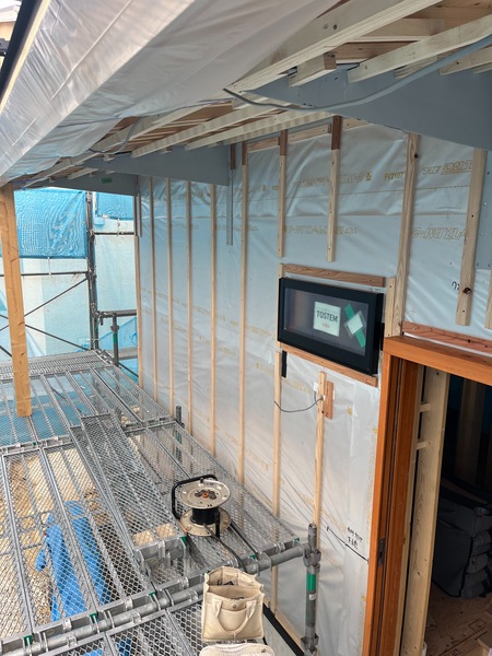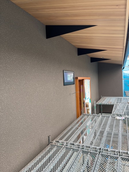 来週には仮設足場を解体しますので家全体が見れるようになります、また全体の写真も載せますのでジョリパット仕上げの雰囲気をお伝え出来たらなと思っております。