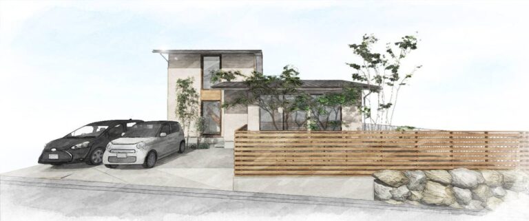 軒をしっかりと出した切妻屋根と、白色の外壁材に杉板のアクセントが映える和モダンな雰囲気の外観になりました。