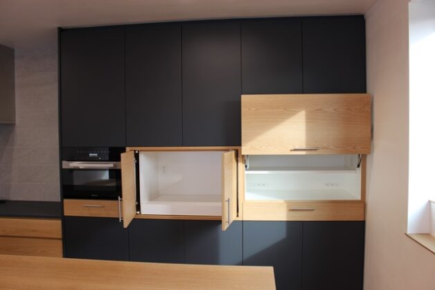 キッチンバックは家電を極力見せない収納をご希望頂き、何度も打ち合わせを重ねた
