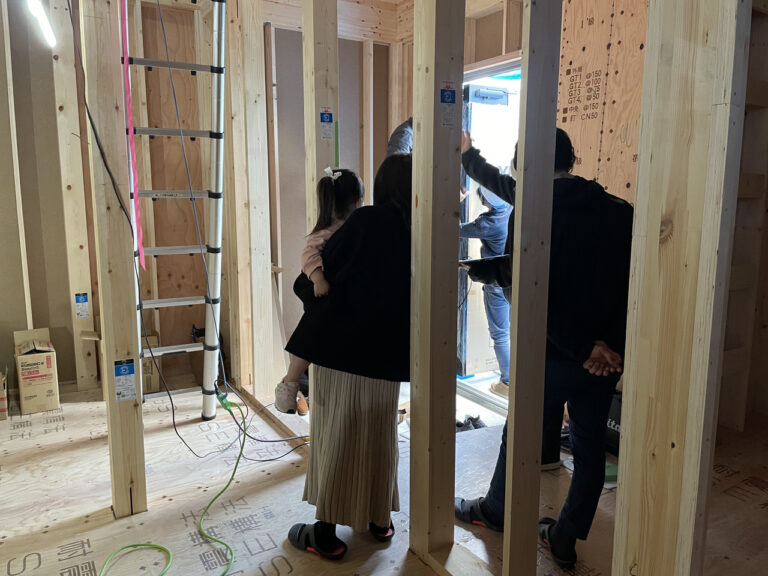 図面上だけではイメージしづらいところも、現場に立ってみると部屋の大きさを体感しながら検討できるのでコンセントが欲しい位置などが明確になっていきます。