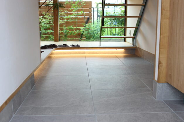 裏手のお庭は西側のためあえて目線の高さを避け、西日の明るさを上手に取り込める地窓としました。