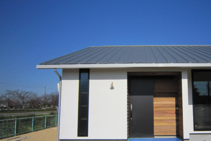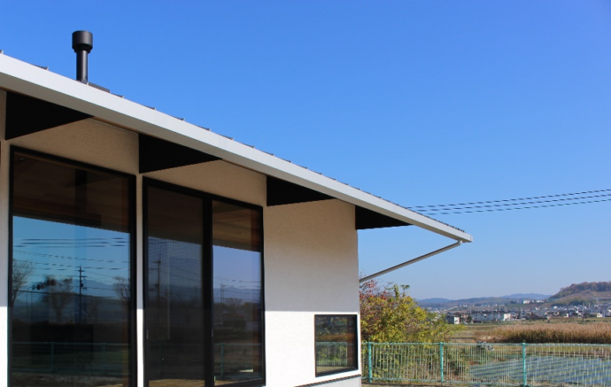 外観は4寸勾配のシンプルな切妻屋根に薪ストーブの煙突がアクセントになりました。