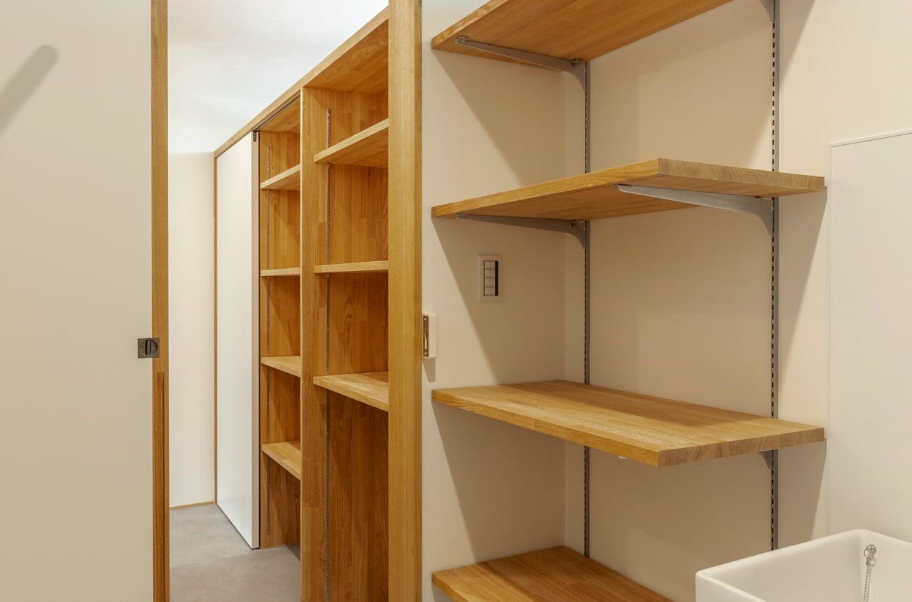多様な役割を担う空間だからこそ、家事動線とのつながりまで含めて設計します。日々の作業がスムーズになる機能を、無理なく一室にまとめます。