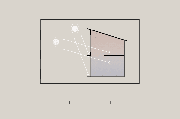 太陽の軌道は決まっていますから、季節ごとの日射はコンピュータでシミュレーションすることが可能です。これにより、冬の日射熱の取得や夏の遮熱を検討することができます。また、同時に近隣の高い建物が影を作ってしまうなどの影響も併せて検討します。