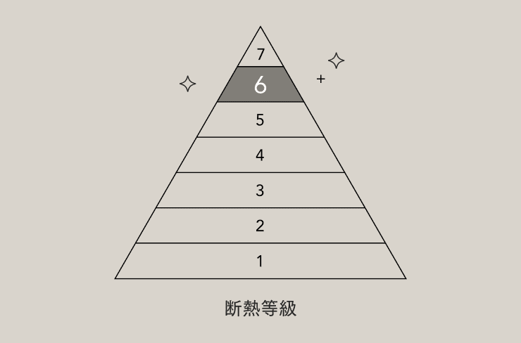 住宅の断熱性能は「断熱等性能等級」で示されます。2022年10月の改正により、現在は7段階に分けられています。マイ工務店では、その中でも上から2つ目の「等級6」を目安に設計を行っています。