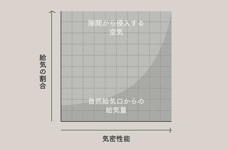 人間は空気中の酸素を体内に取り込んで二酸化炭素を排出します。それ以外にも、人が生活することにより、ホコリや匂い、水蒸気などが発生します。これらを排出し、新鮮な外の空気を取り込むには連続した換気が必要です。また、しっかりした換気を行うためには、住宅の気密性能が関係してきます。気密性能が低い家では、排気ファン周辺の空気だけが交換されてしまう「ショートサーキット」という現象が生じ、家全体の汚れた空気が滞留してしまうからです。
