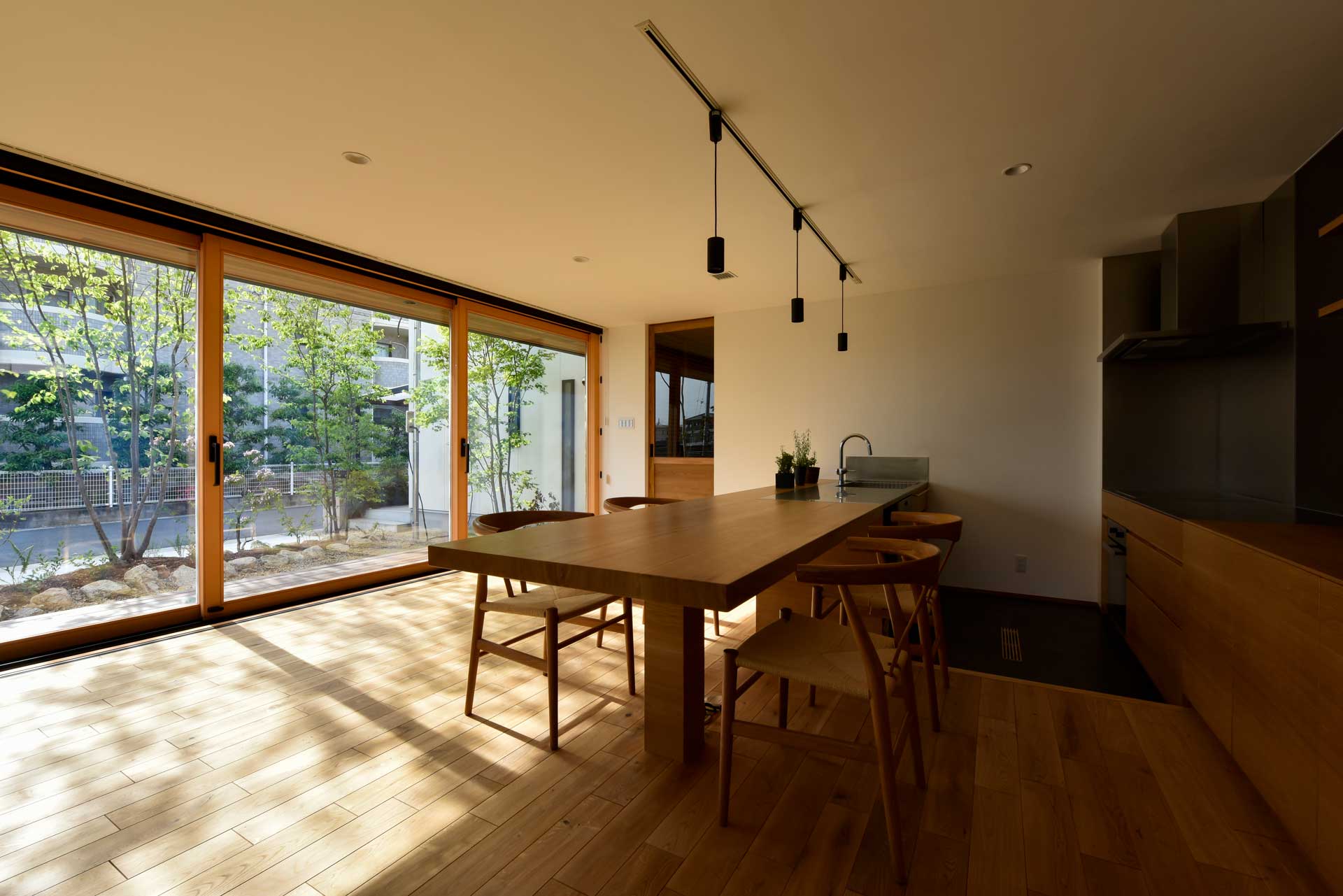 ・ダイニングテーブルと一体型の造作オーダーメイドキッチン