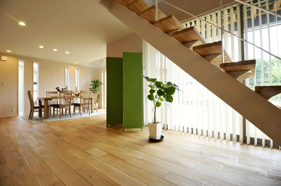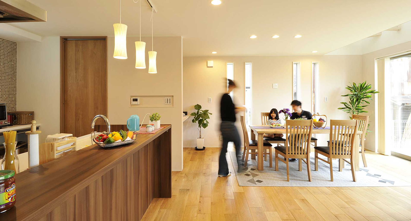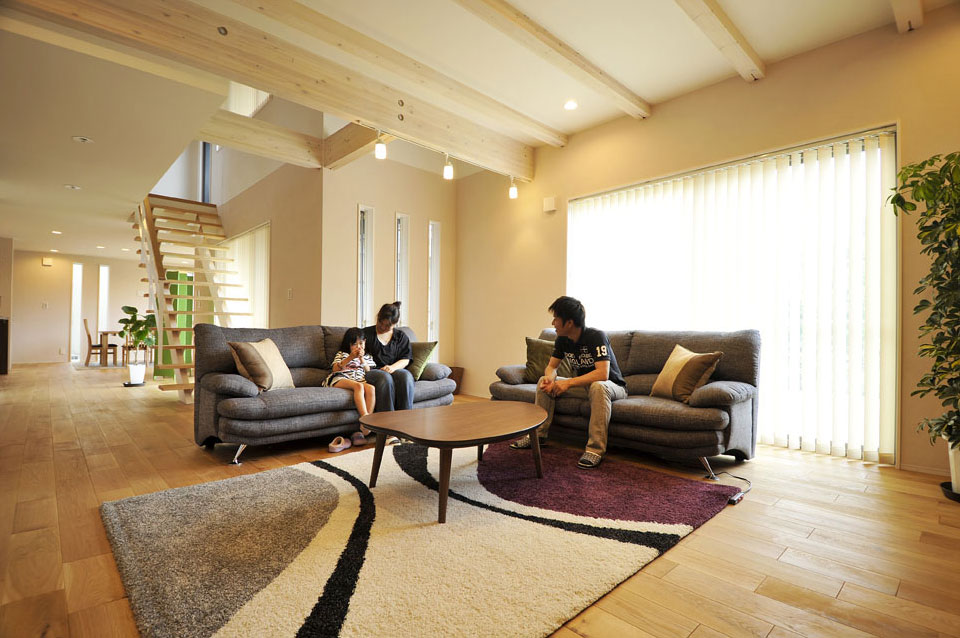 「たまたまSE構法を知って、いいなと思ったんですよ」とご主人。何についてでもとことこ調べる性分のご主人は、SE構法のメーカーである株式会社エヌ・シー・エヌのWebサイトも夜中まで調べたそうです。そして、「開口が広くとれて、1室大空間がつくれるのが魅力。『これで建てたい!』と思いました」そしてSE構法の登録店であるマイ工務店を知ることに。