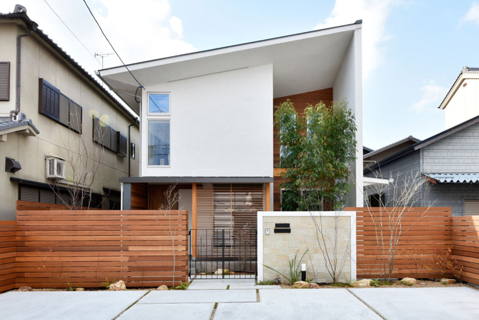 左官仕上げの外壁と白を基調とした外観デザインが印象的なS様邸。