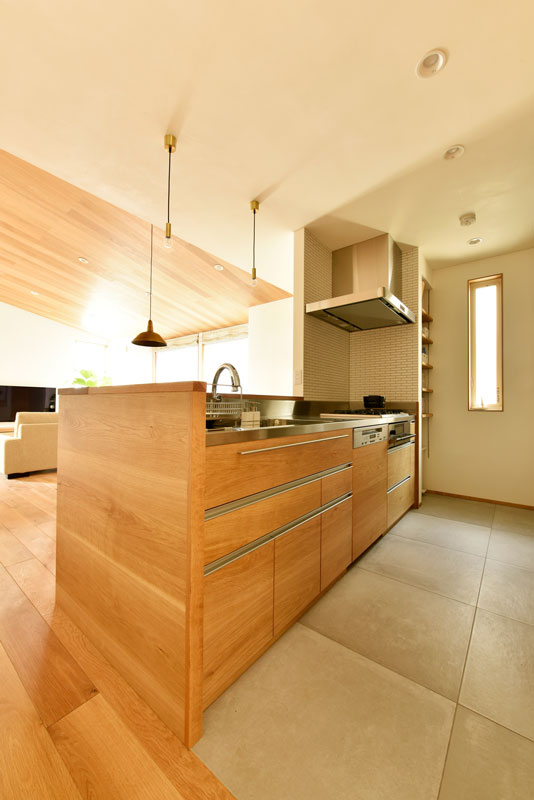 リビングのカウンターも、奥様自らが図面を引いて制作を依頼。