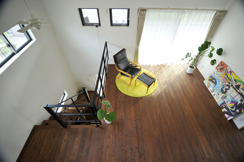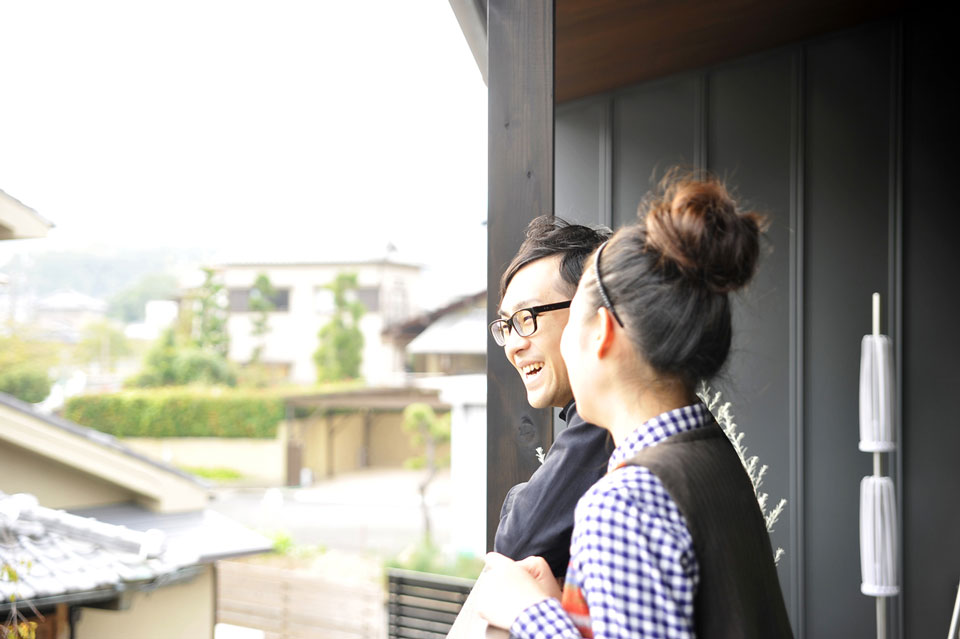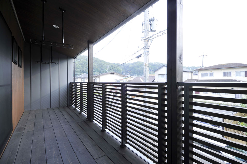 デザインだけでなく、省エネや温熱環境も考えられたK様邸は、国土交通省の「住宅のゼロ・エネルギー化推進事業」による太陽光発電設備の補助金対象にもなりました。また、奥行きのあるバルコニーは、軒先を長くして夏の熱い日射を遮るパッシブデザインの工夫。ちなみに、奥様は、建築やインテリアが好きで、以前からパッシブデザインは知っておられたそうです。
