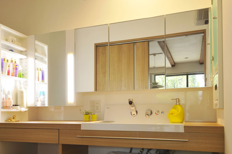 そのため、ダイニングテーブルやTVボード、洗面台も、家に合わせてオリジナルで製作されました。