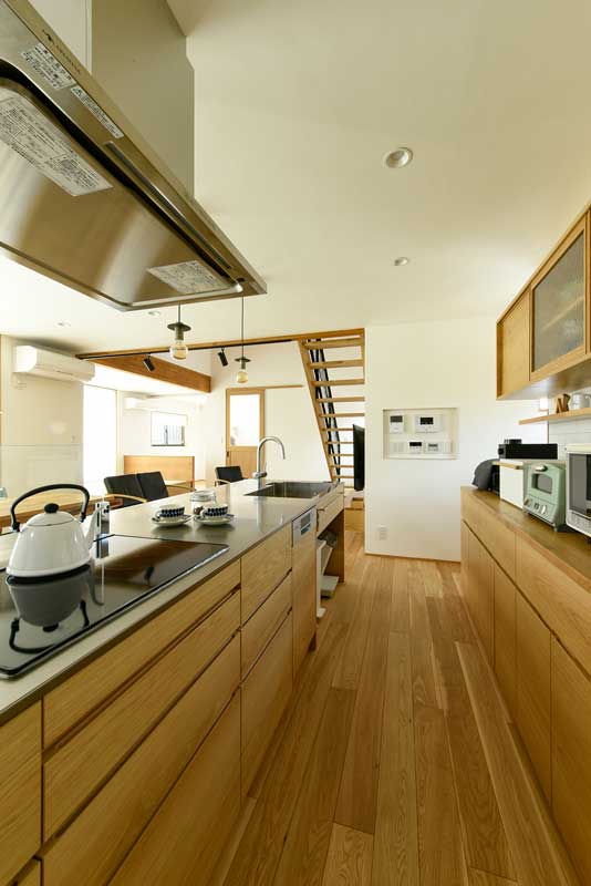 キッチンは、お子さんがお手伝いをしやすいようにアイランド型に配置。