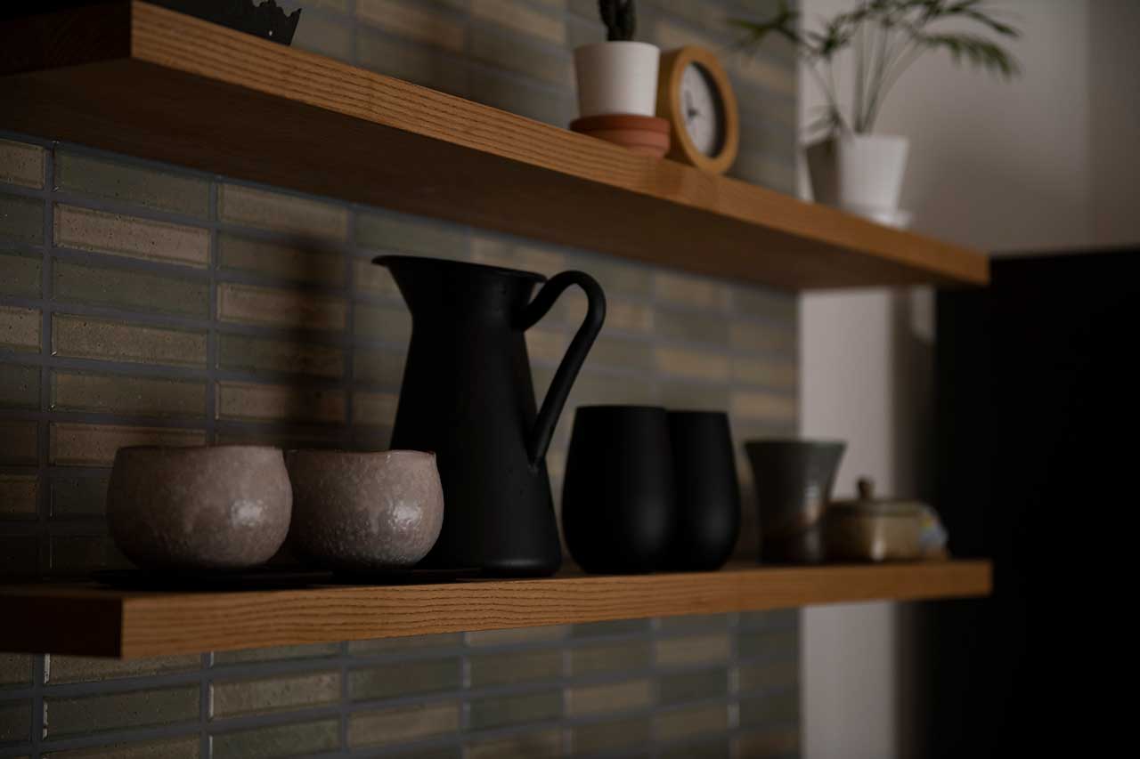 さらに、本棚もある広いトイレや、ウッドデッキの色に合わせた造作キッチン、そして、最後の最後まで悩んだというキッチンと洗面所のタイルは、シンプルなS様邸の中でのアクセント。