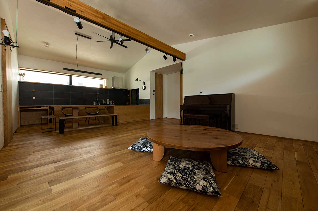 空調システムは、熱交換型の第一種換気システムです。ものづくりにお詳しいF様はシステムを見て、「14帖用のエアコン1台で40坪の平屋全館を冷暖房できるのか?」「天井付けの吸気口から供給される暖気は床まで届くのか?」と最初は不安に思われたそう。しかし、ほぼ1年をこの家で過ごされた結果、それらの不安は杞憂とわかったとともに、高気密高断熱の効果を再認識されたとのことでした。