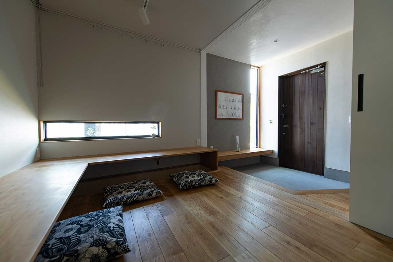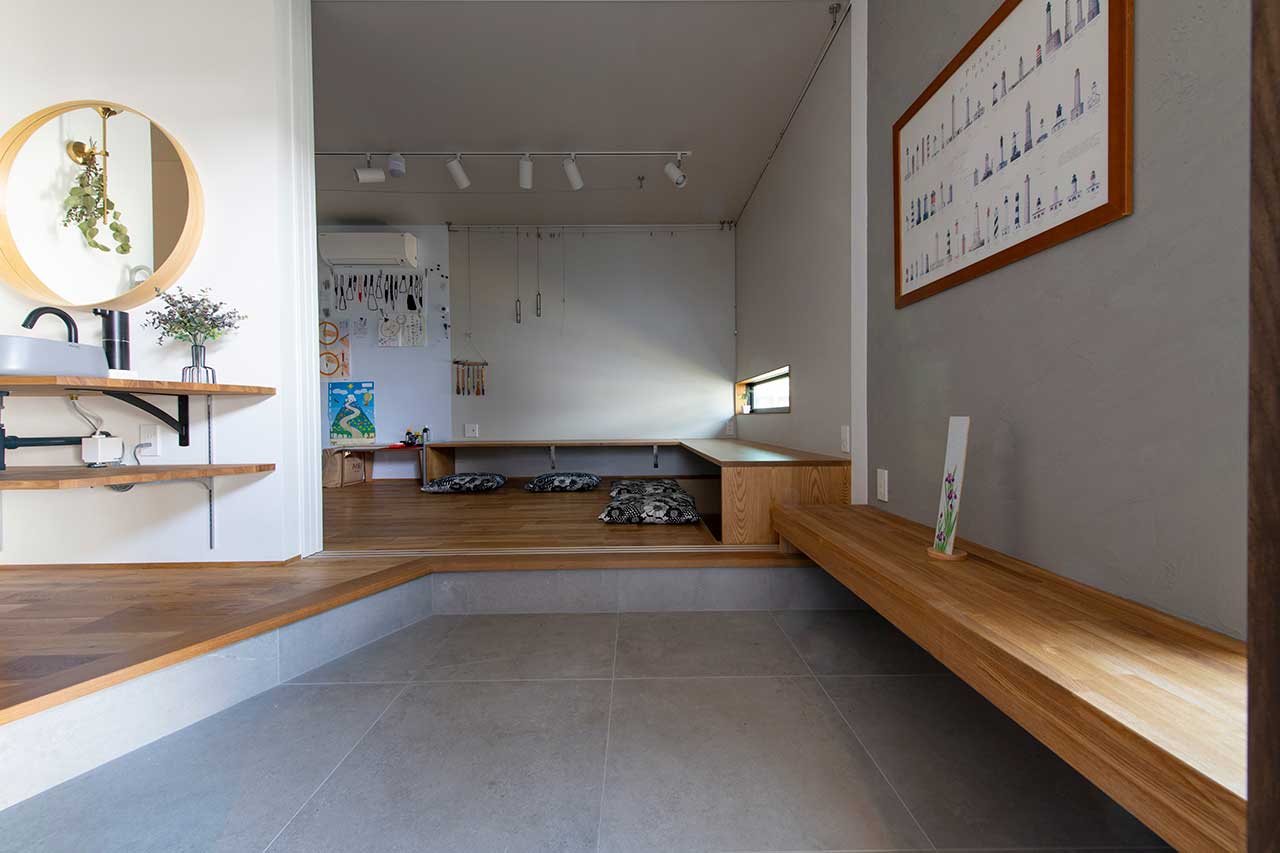 また、プライベートな空間とパブリックな空間が分けられているのもプランの特徴。玄関を入ってすぐには、奥様が開いている書道教室のスペースを配置。