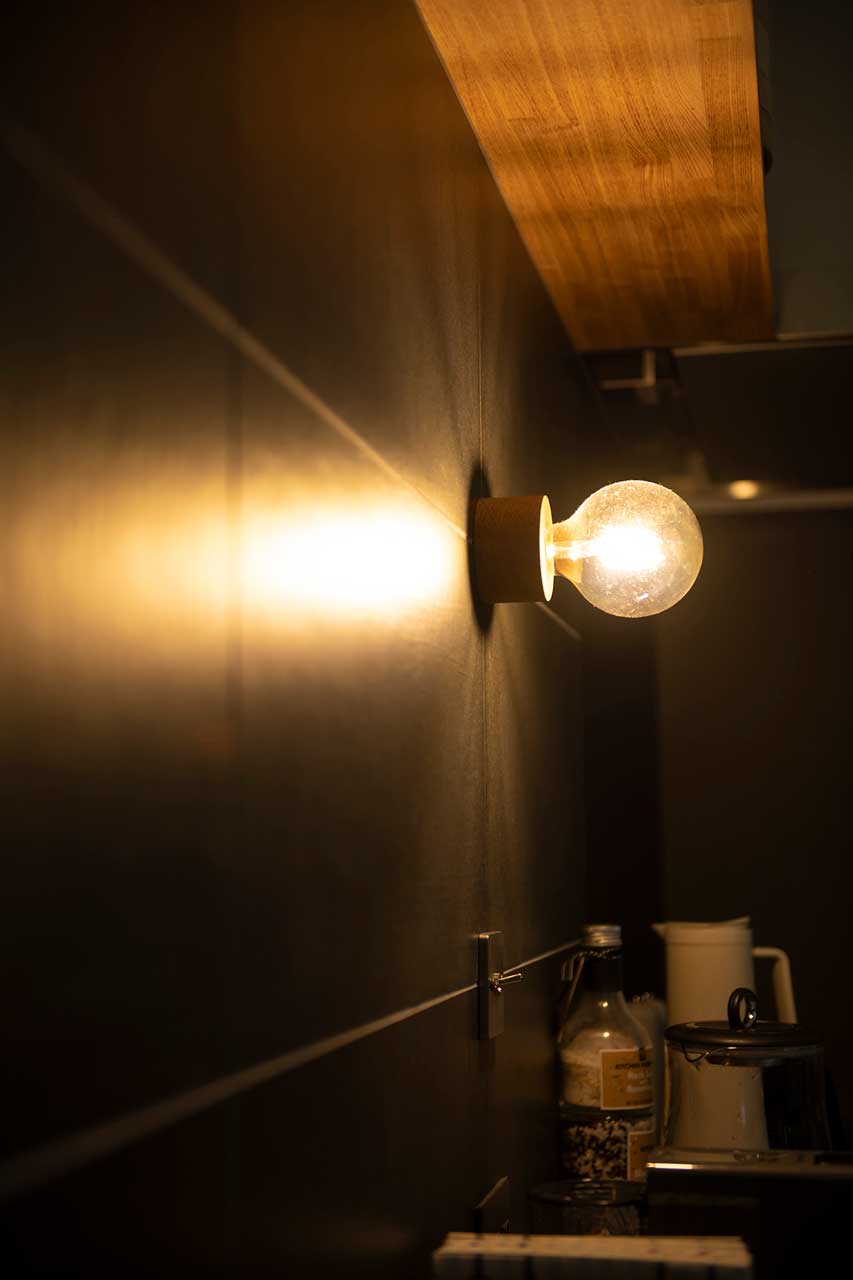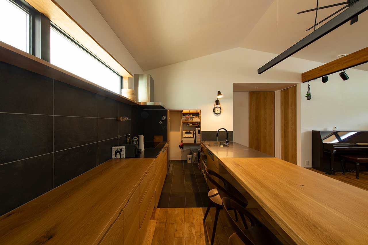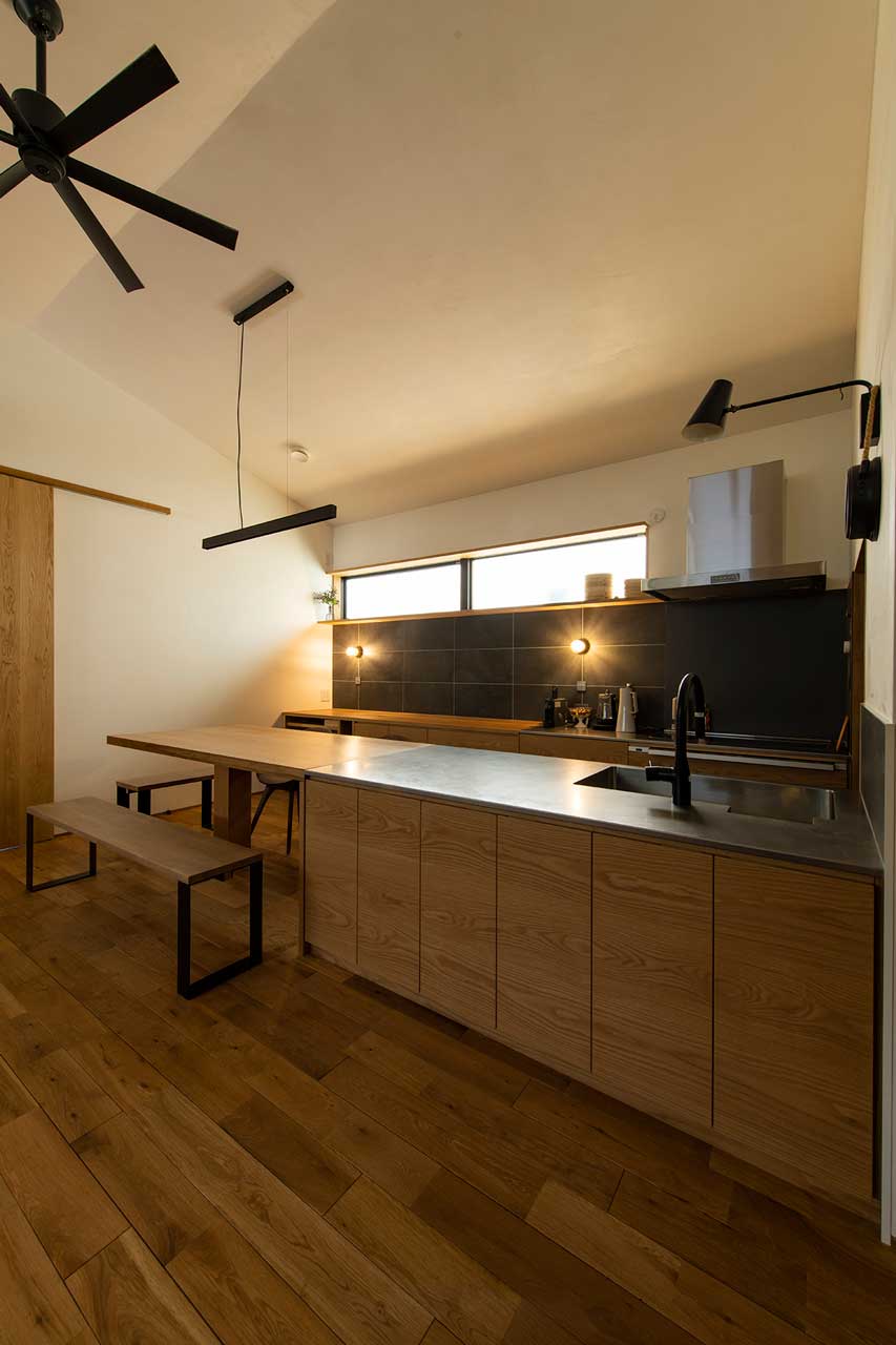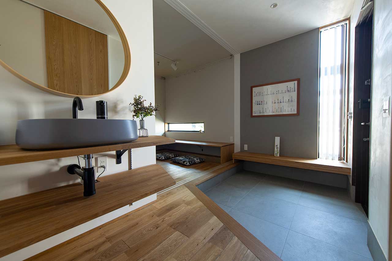 F様ご夫妻がイメージされていたのは、外からの光をたっぷりと取り込むような家ではなく、ホテルやマンションのように落ち着いた空間。そのため、大きな開口部は設けず、昼間でも外のにぎわいが室内まで届くことはありません。