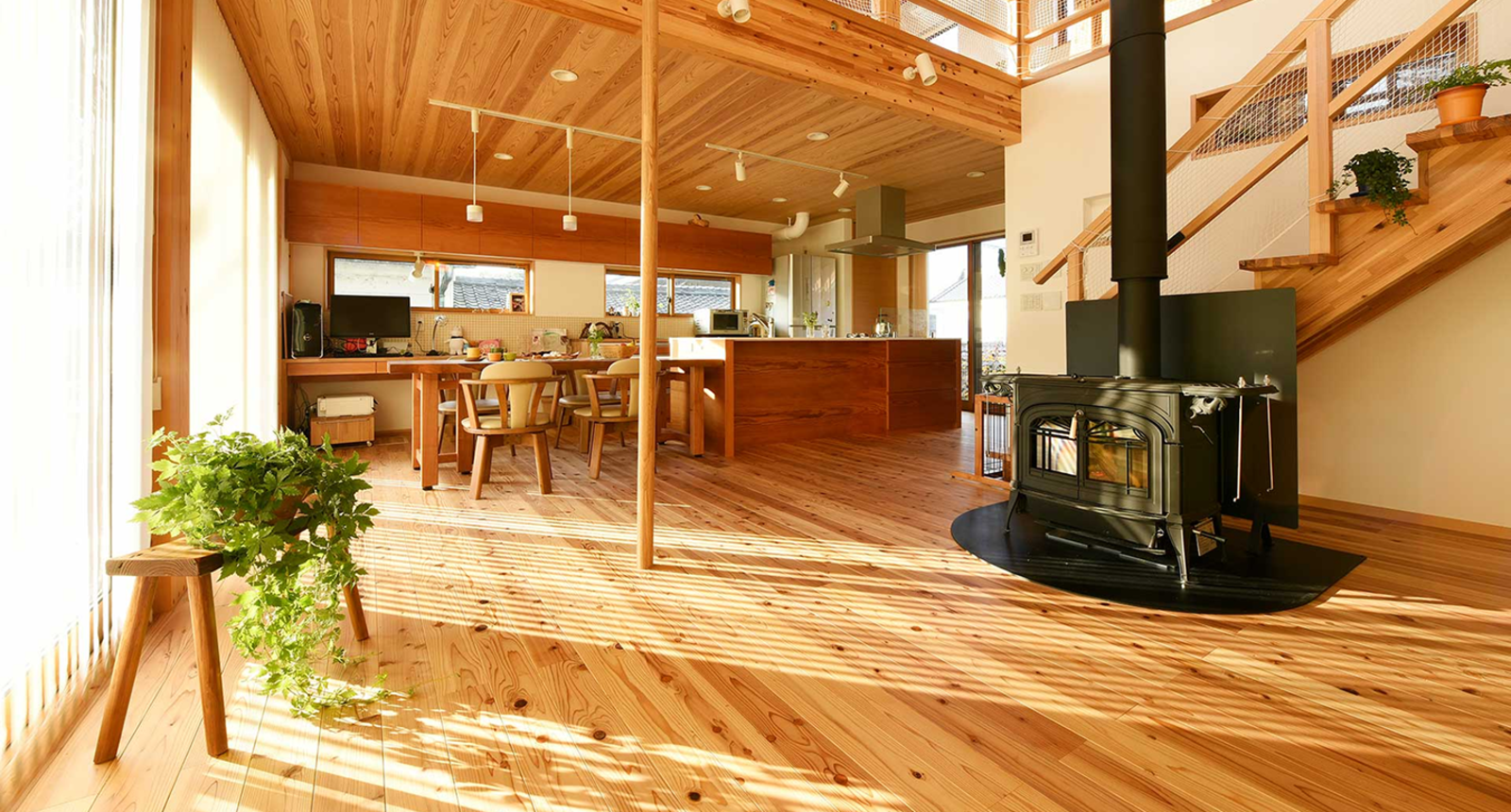 さらに、リビングルームの中央には、このお宅のシンボル的な薪ストーブが。まるで別荘のようです。「薪ストーブのある生活はお互い憧れていましたね。薪代や掃除の手間のことは気になったけど、やっぱり雰囲気は最高です!」
