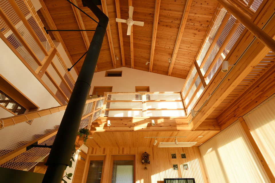当初から望んでいた、吹き抜けのキャットウォークは、回廊型に。