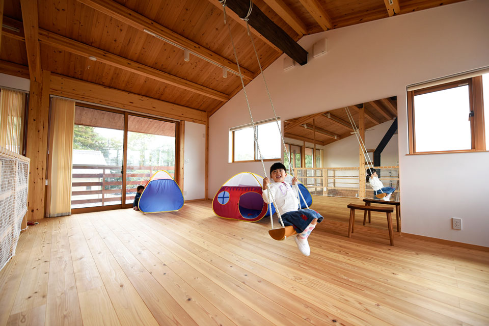 「子どもたちがグルグル走り回れたら最高だろうなと」と、ご主人。お子さんが大きくなったら、本棚などで部屋を仕切ってそれぞれが使う予定だそうです。「子どもたちが個室にこもるようにはしたくないんです。」