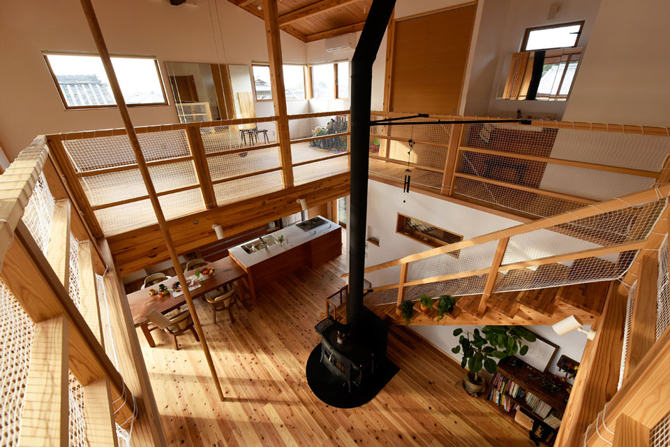 U様がイメージされたのは、家族の存在をお互いに感じられる、全体がひとつの空間のような家。吹き抜けがあったり、キャットウォークがあったり。子どもたちにも、そんな空間でのびのびと育って欲しいと考えておられました。
