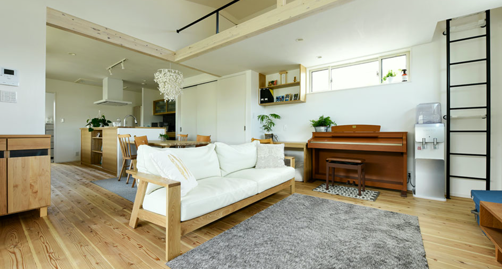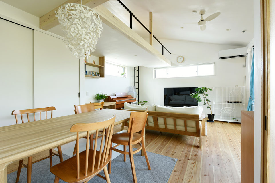 完成したお宅の、ナチュラルなウッドカラーと白とのコンビネーションで統一された清潔感のあるインテリアは、奥様のセンスが光ります。