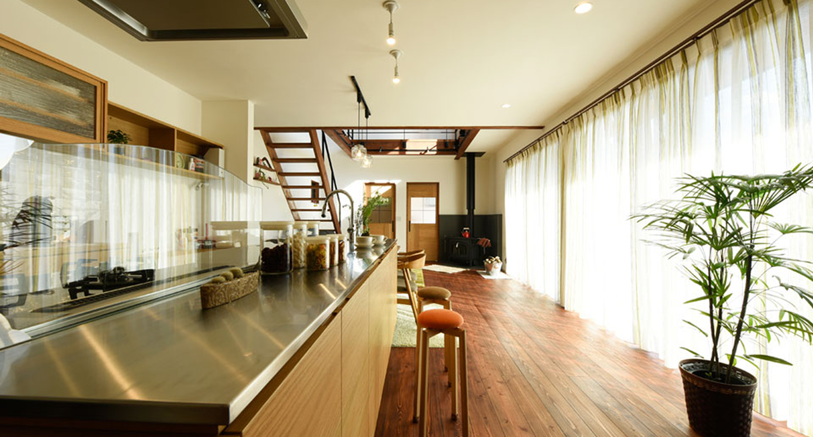 薪ストーブ1台で家全体を暖房できること、また、夏は風の通りをよくするためです。標高が高いので、夏も扇風機だけで十分なんです。夜になると「涼しい」と感じる日さえあるんです。