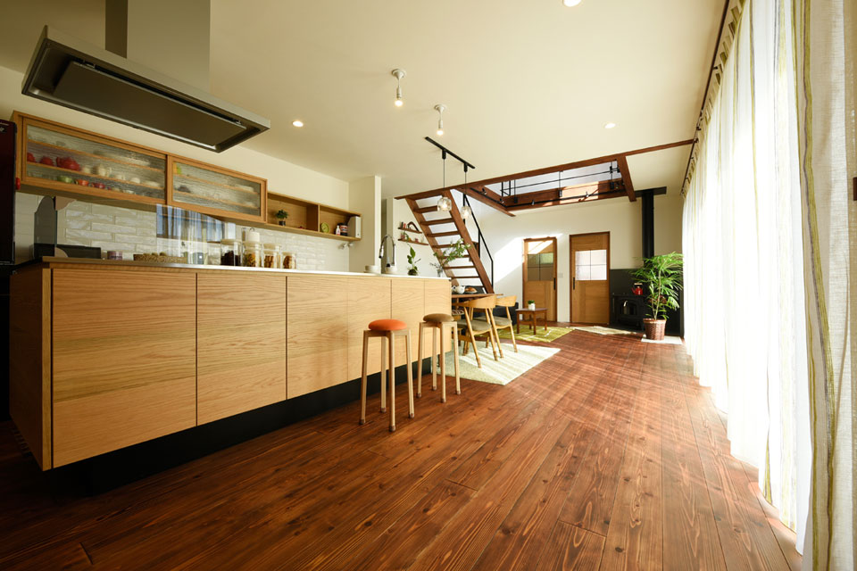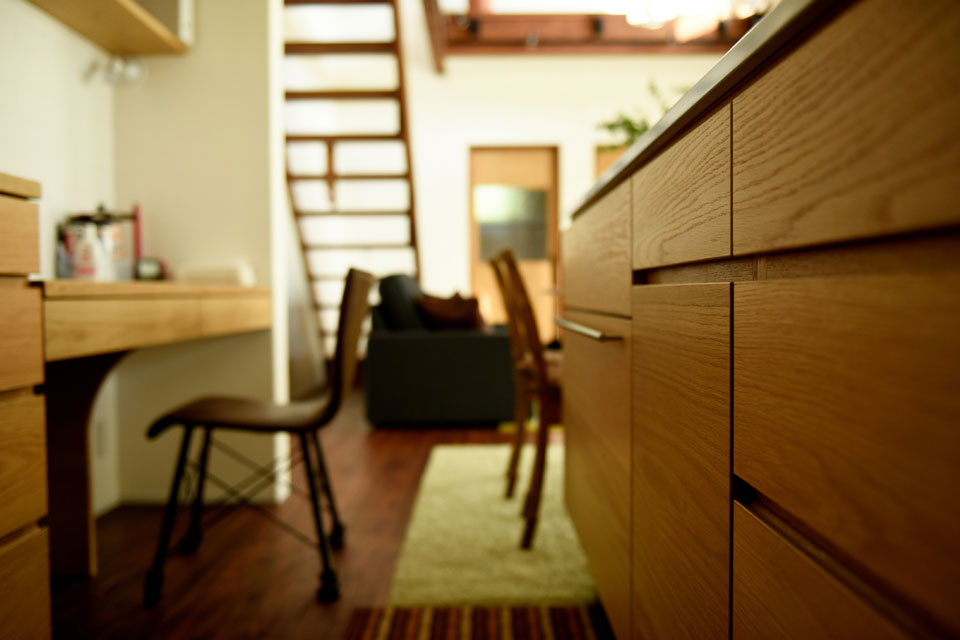 オリジナルのキッチンはご家族の顔見ながら調理できるよう、アイランド型にしたり、そのキッチンと背中合わせにデスクが設けたりと、理想とする家をそのまま実現したお宅です。今後も愛着をもって生活していただくことで、より素敵な暮らしと住まいになっていくことでしょう。